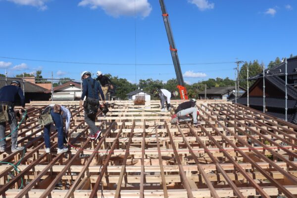 11月吉日、福岡県大川市にてM様邸棟上げを行いました。